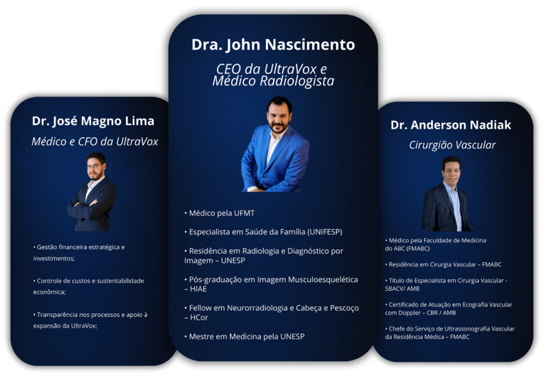 O corpo docente da Ultravox é formado por profissionais altamente qualificados, com ampla experiência acadêmica e prática nas diversas áreas da medicina. Conheça: